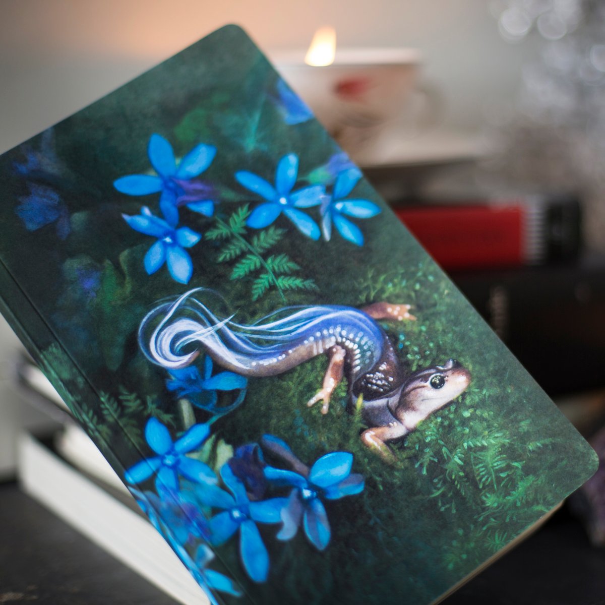 This lovely little notebook features a beautiful wrap around print of a Salamander and Glass Snail, from Redd's Solo Show "Exquisite Corpse"